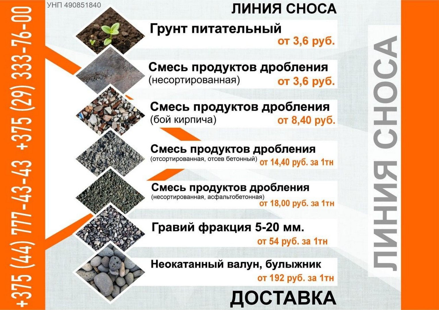 Продукция 2024 Смесь продуктов дробления ТУ BY 490851840.001-2013 Щепа ТУ BY 490851840.003-2015, ТУ BY 100145188.003-2009 Материал битумный дробленый ТУ BY 490851840.002-2015 Грунт питательный ТУ BY490851840.008-2020